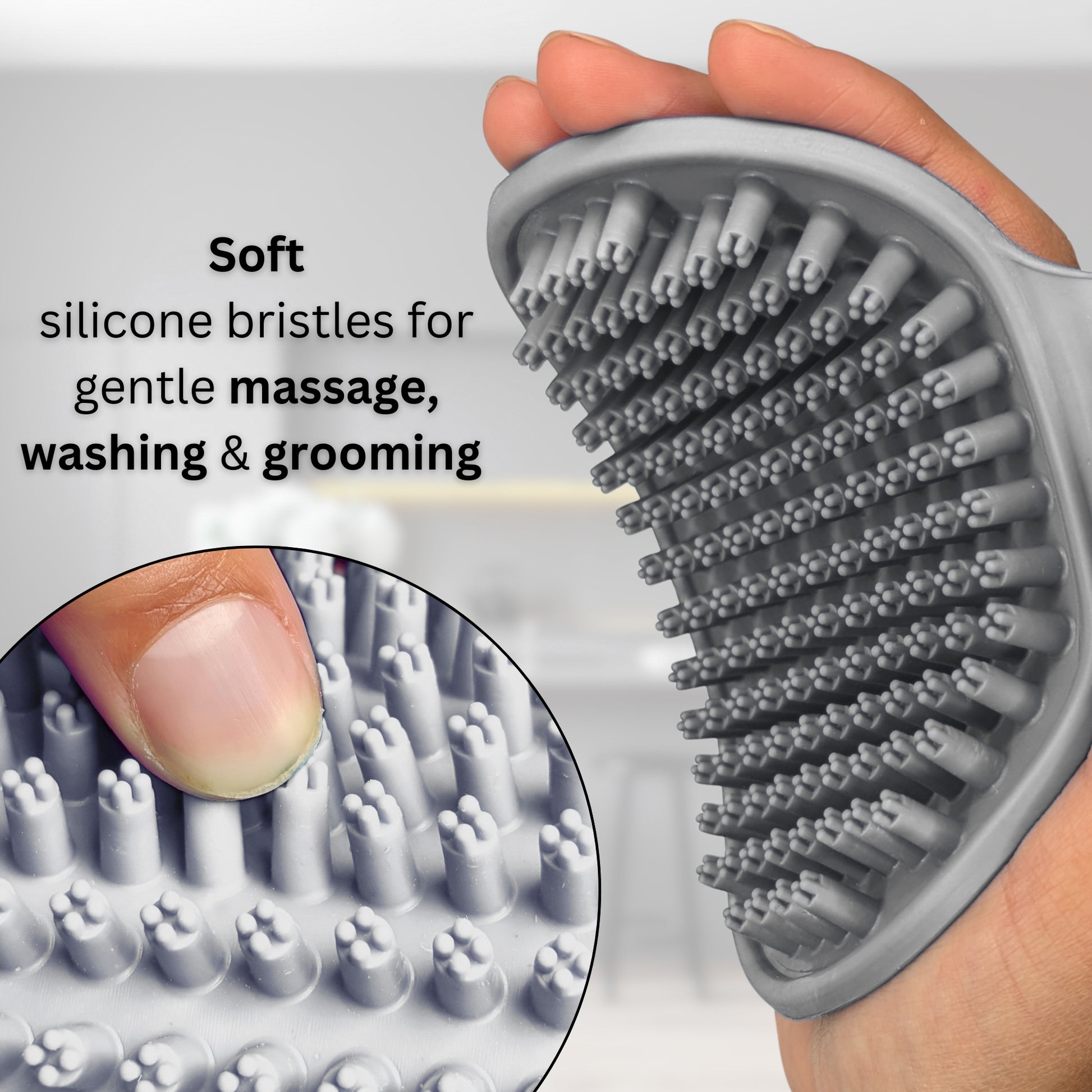 Dog Bath Brush - Silicone Grooming and Shedding Brush for Dogs & Cats, Puppy Essentials Dog Shampoo Brush, Pet Hair Removal Tool for Deep Clean & Massage